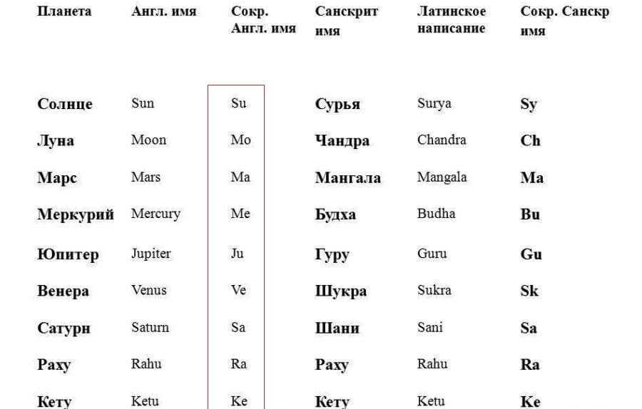Планеты в натальной карте обозначаются буквами латинского алфавита, эти обозначения универсальны для любых астрологических программ.