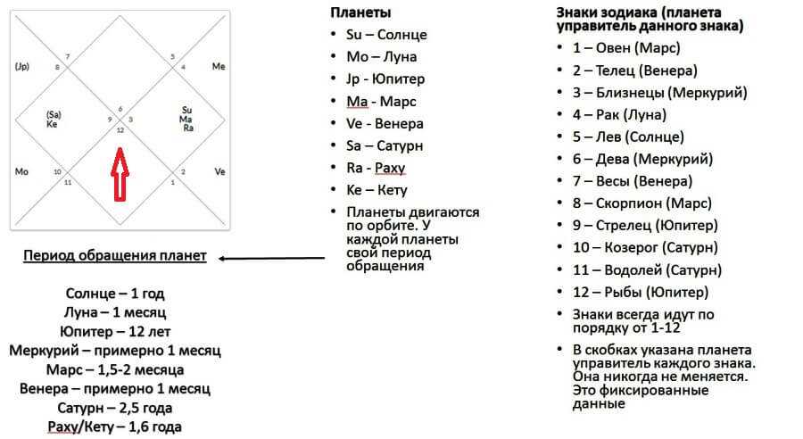 Теперь переложим все ранее сказанное на схематическое изображение натальной карты, которое мы используем в ведической астрологии.