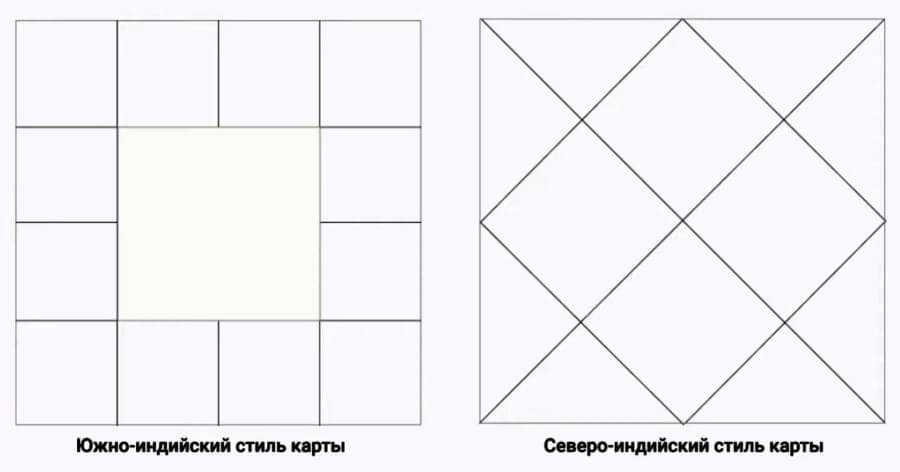 Я предпочитаю использовать северо-индийский стиль, его еще называют «алмазной картой». В этом стиле сетка Домов фиксирована, т.е. все ячейки таблицы всегда олицетворяют одни и те же Дома.