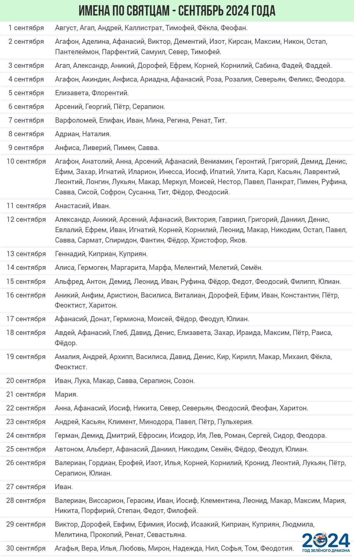 | 29 сентября | Михаил |