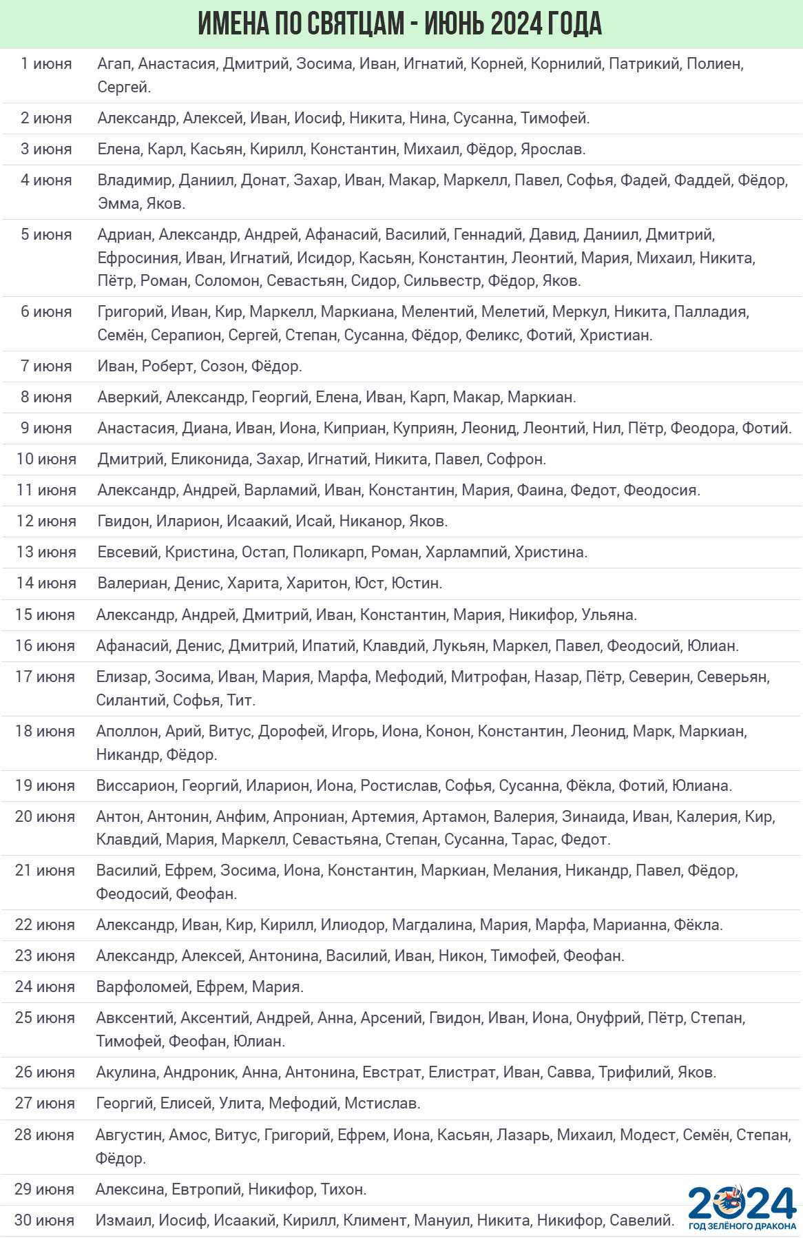 Для тех, чье рождение или крещение приходится на июнь, в православных Святцах также есть много вариантов имени, от популярных сегодня до старославянских и звучащих очень необычно.