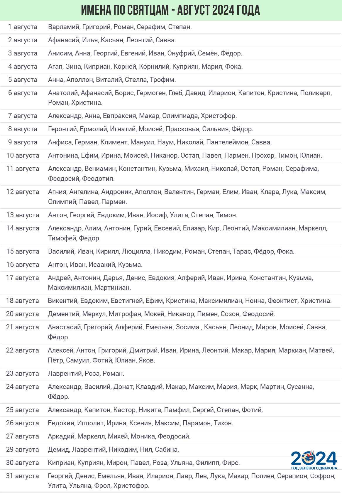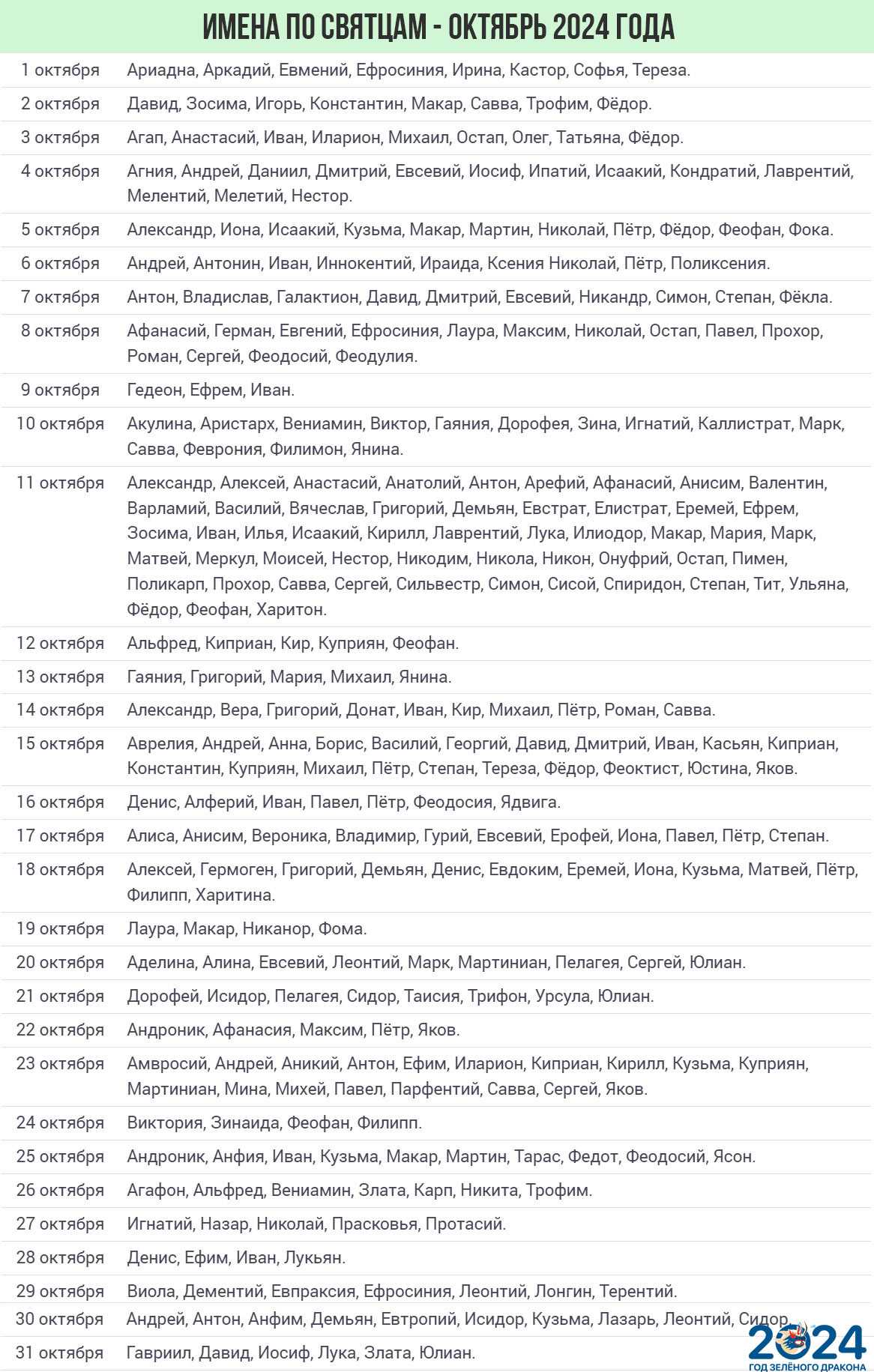 Ниже представлен список православных праздников по календарю на 2024 год. Возможно, ваше имя тоже в нем есть.