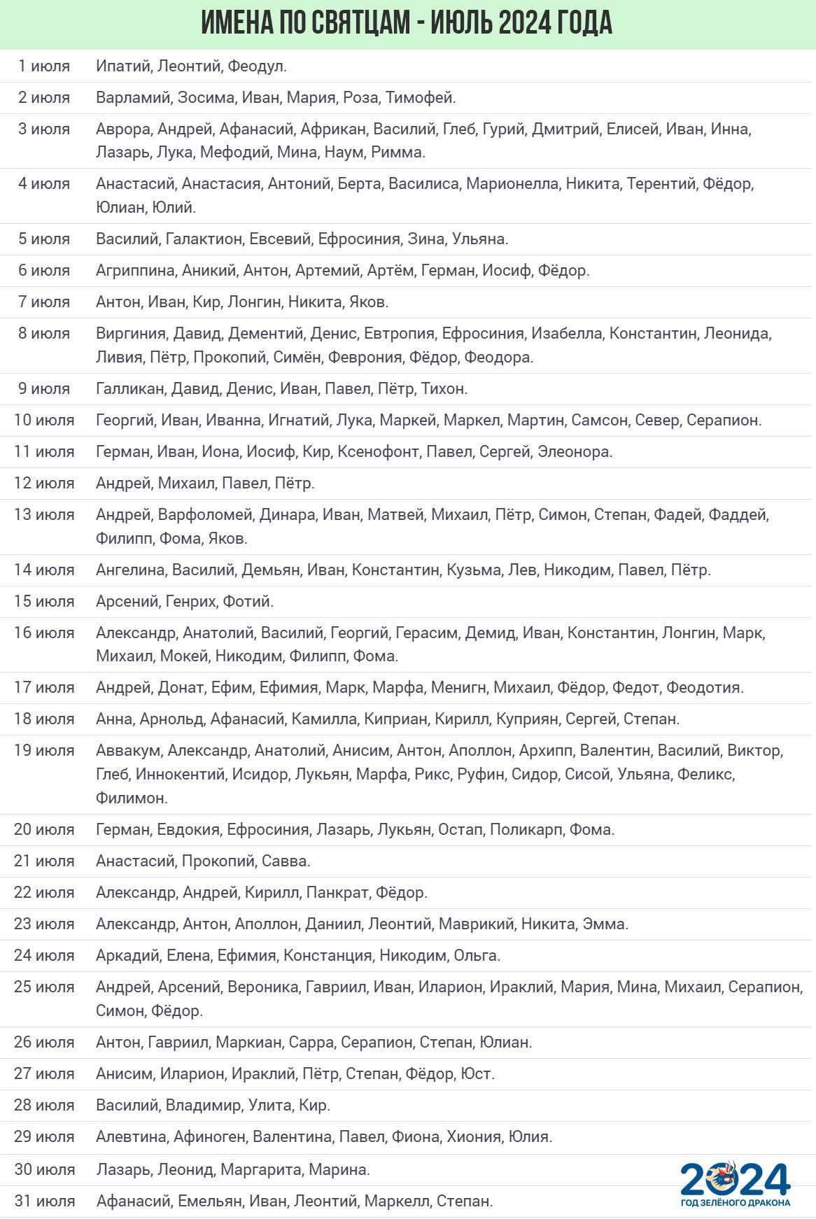 В 7-м месяце 2024 года почитать будут святых и великомучеников, которые носят такие имена: