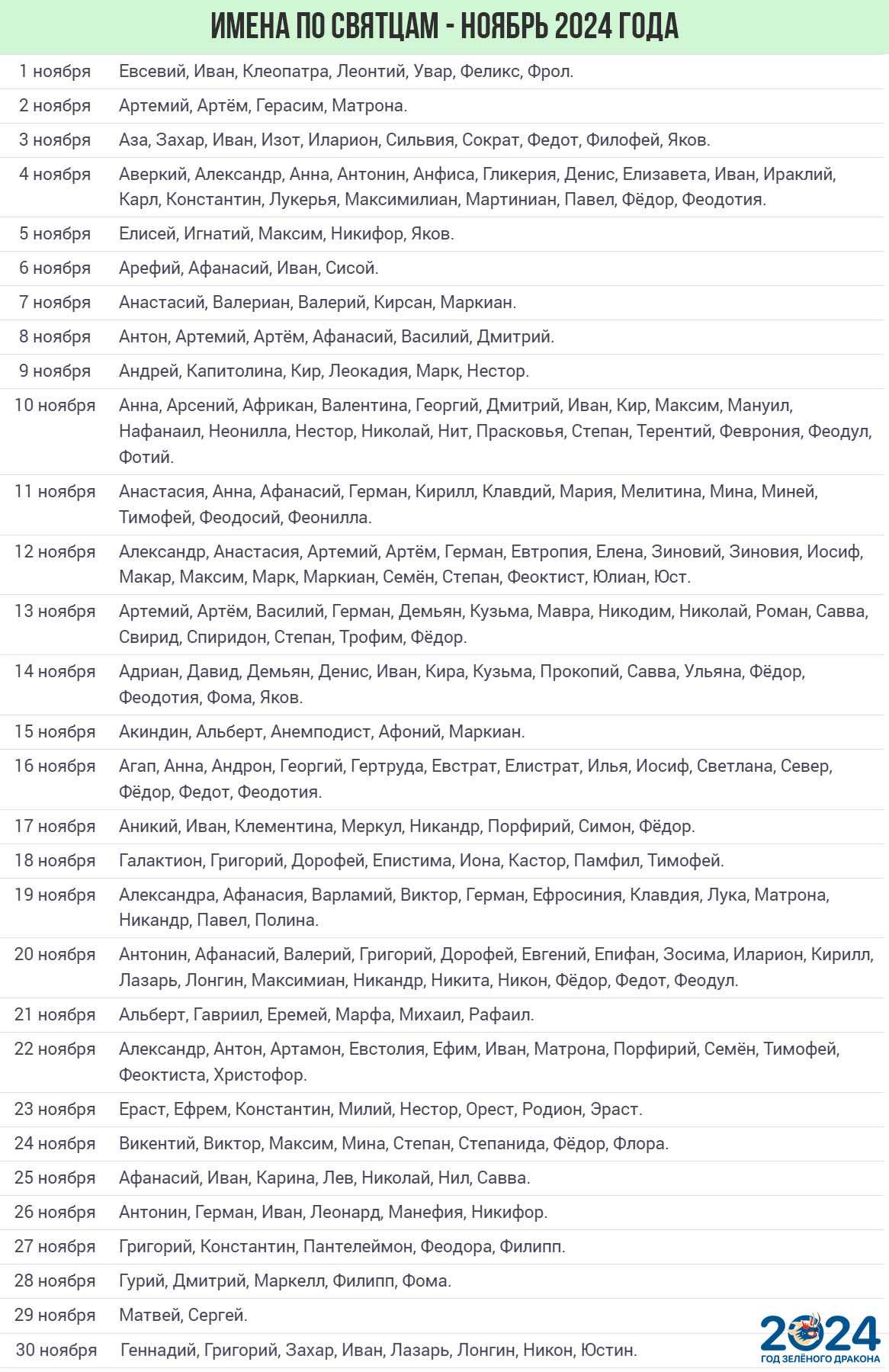 | 22 ноября | Анастасия |
